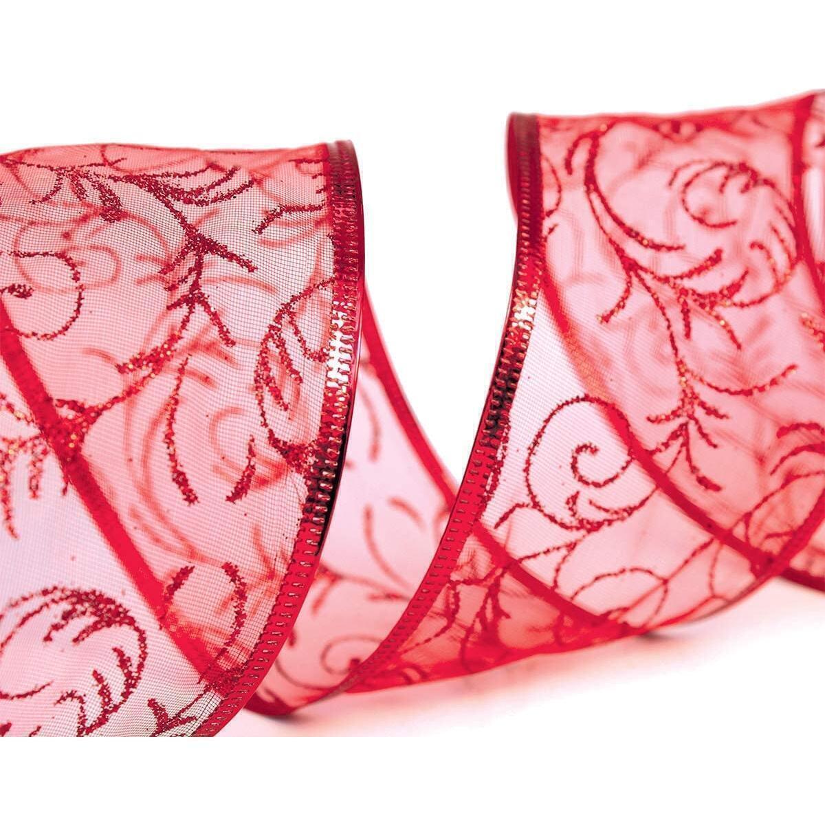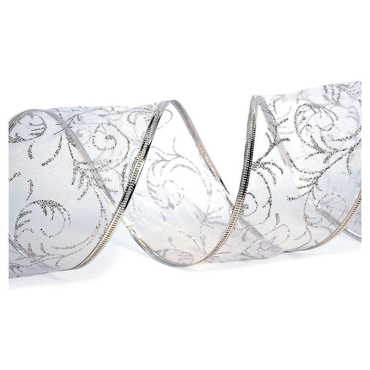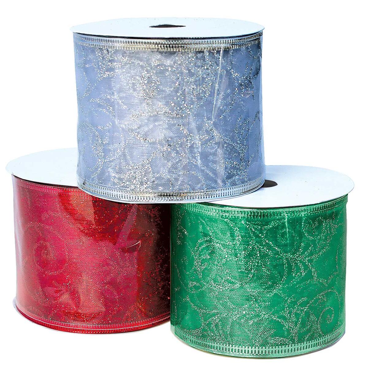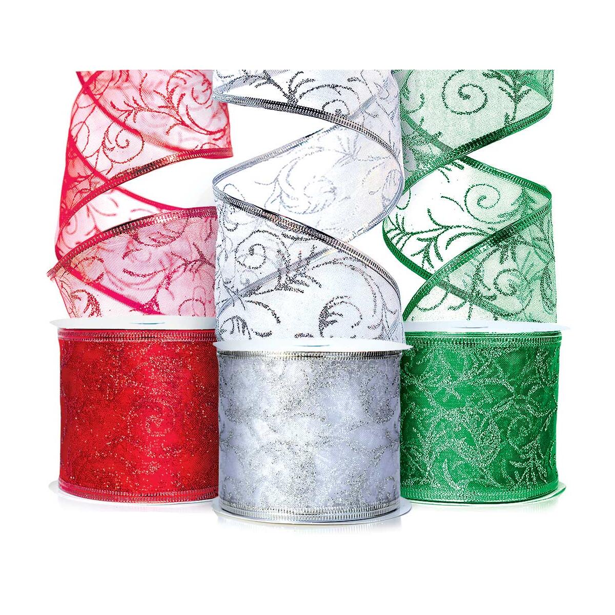 Wired Ribbon for Gift Wrapping Organza Ribbons Xmas Christmas Holiday Sheer 2.5 Inch Wide Wire Edged Red Gold Silver/White Glitter Tree Decoration Crafts/Craft, Gifts Wrap 30 Yards/10 Yard Ea. Roll